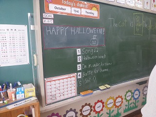 ハロウィンでもあったため、授業の前半では、ハロウィンに関する英単語(ghot,pumpkin,mummy,batなど)を発音しました。