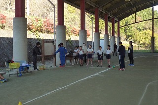 1・2年生は3分間、3・4年生は4分間、5・6年生は6分間の時間走で距離を計測します。
