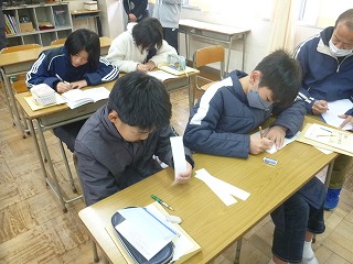 中学校で中学生と一緒の授業は初めてであったため、初めは少し緊張気味でしたが、自分の思ったこと、感じたことを5・7・5の17文字で表現することに全員が集中しました。