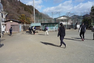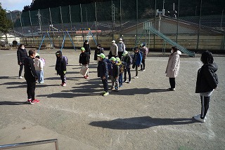 11時45分、校庭に全校児童が集まり集団下校をしました。