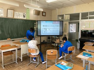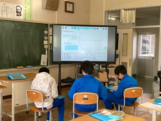 電子黒板、IPadを使いながらめあてに向かって課題を解き進めていきます。