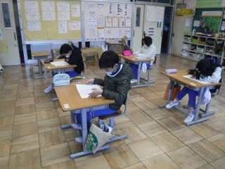 今日は月に一度の全校漢字テストです。