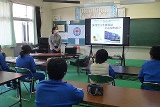タバコが体に及ぼす影響について、また、日本に広まった経緯などについて教えていただきました。そして、最後の児童の感想では、大人になっていく自分自身がどのような取組をしていったらよいのか、考え発表できました。