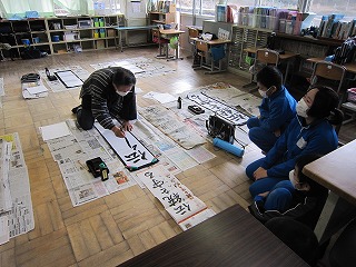 午前中、富岡市にお住いの横尾隆雲先生にお越しいただき、書き初めに向けて書写指導をしていただきました。