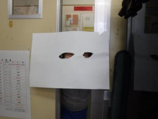 「やぶれしょうじのあなから、二つのくりくりした目玉がこちらをのぞいていました。」という文から、まずは、のぞいてみました。すると・・「あっ!」