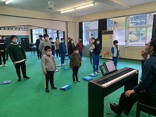 業前の時間にみどりの部屋で音楽集会を行いました。