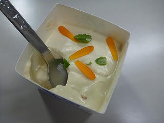 甘いクリームの上にはきれいな花びらがあり、底はサクサクとしたスナックが敷いてありました。