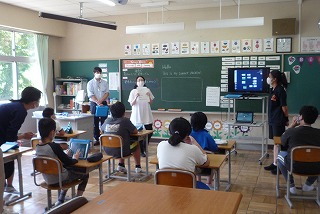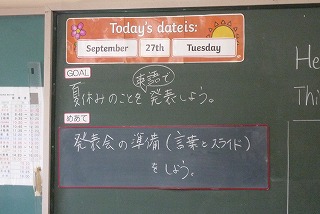 4時間目、6年生の英語では、夏休みの出来事を英語で発表しました。
