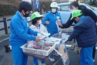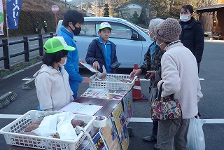 どんな形のサツマイモがよいか調べ、今回は1セット600gにそろえました。なんもくテレビの告知放送や回覧板を見て買いに来てくださった方もいらっしゃいました。用意した20セットは、販売開始20分で完売しました。
