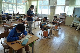 2、3時間目は、千原ドームで運動会練習をしました。その後の4時間目ですが、どのクラスも頑張って学習していました。1年生は、音読をしました。