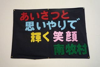 そして、学校には南牧村いじめ防止こども会議で決まったスローガンの手作り布ポスターをいただきました。