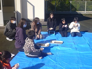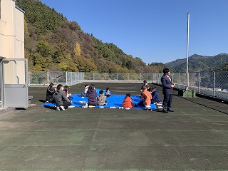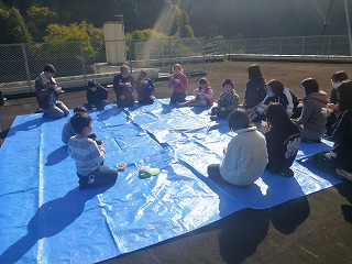 ブルーシートを敷いてみんなで食べました。少し風は吹いていましたが、寒くなくきれいな紅葉を見ながら、おいしくいただきました。