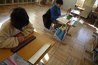 3時間目、4年生はそろばんをしました。見るのも触るのも初めての子もいました。指づかいに気を付けながら、玉をはじきました。